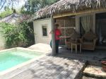 We were dropped off right on the beach of our hotel ( Avia Villas) and were warmly greeted by Ocean (he pronounced it O Shan) who showed us to our private one bedroom villa with a nice little yard, our own pool and porch with comfy seat (oh.. we are truly in heaven!)