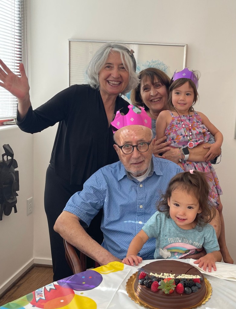 A joy filled belated 83rd birthday celebration for Iraj with our sister, her husband (our 5th brother), our precious niece and 2 of her 3 girls. Iraj was the happiest that I had seen him, this trip. He was beaming with palpable joy when sweet Sol decided to sit on his lap and share the chocolate chocolate birthday cake with him.