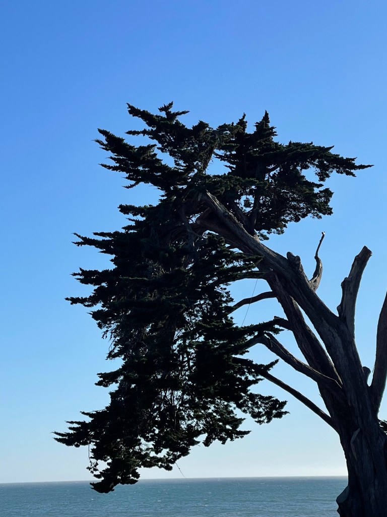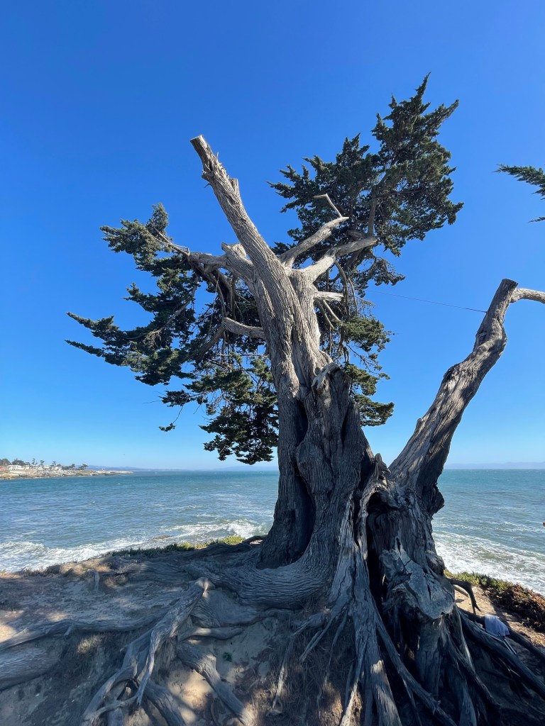 My first stop was to one of our favorite restaurants, the Walnut Ave Cafe, for breakfast. I window shopped while walking down the Pacific Ave and found a very special gift for our granddaughter. I took a long meditative walk from Natural Bridges to the lighthouse along West Cliff, taking photos, watching surfers, marveling at the resilience of the Monterey Pines and the majestic waves.The day ended with an unexpected but much welcomed visit with our neighbors, FRIENDS, and Primary Care Physician (that we came back to see from wherever we were from 1981-2015) at Crow’s Nest restaurant (another family favorite.)